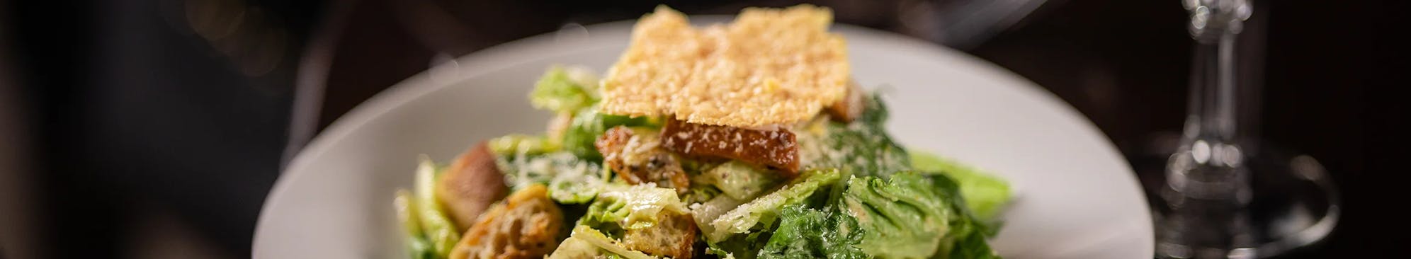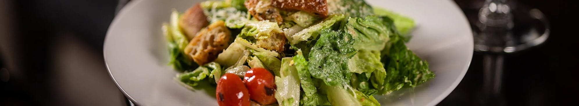 Romaine Lettuce, Herb Roasted Croutons, Caesar Dressing, Blistered Tomatoes, Parmesan Crisps